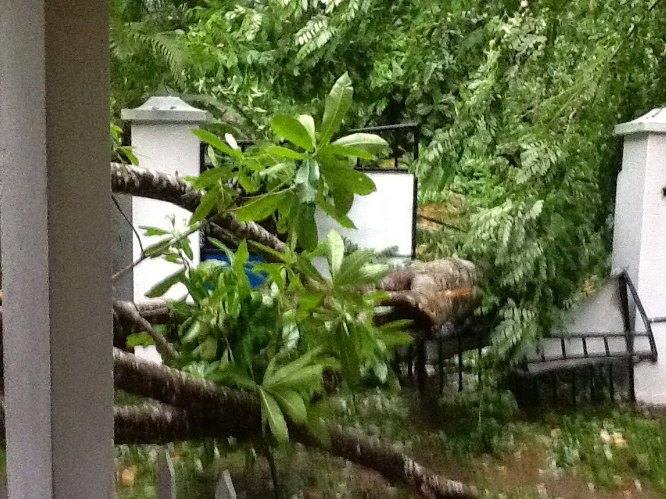 The next day a temporary repair was made to the roof but I am still putting out buckets and mopping up water after rain. The owner of the tree has no money and Im not sure when we will get the gate replaced or the roof properly mended.